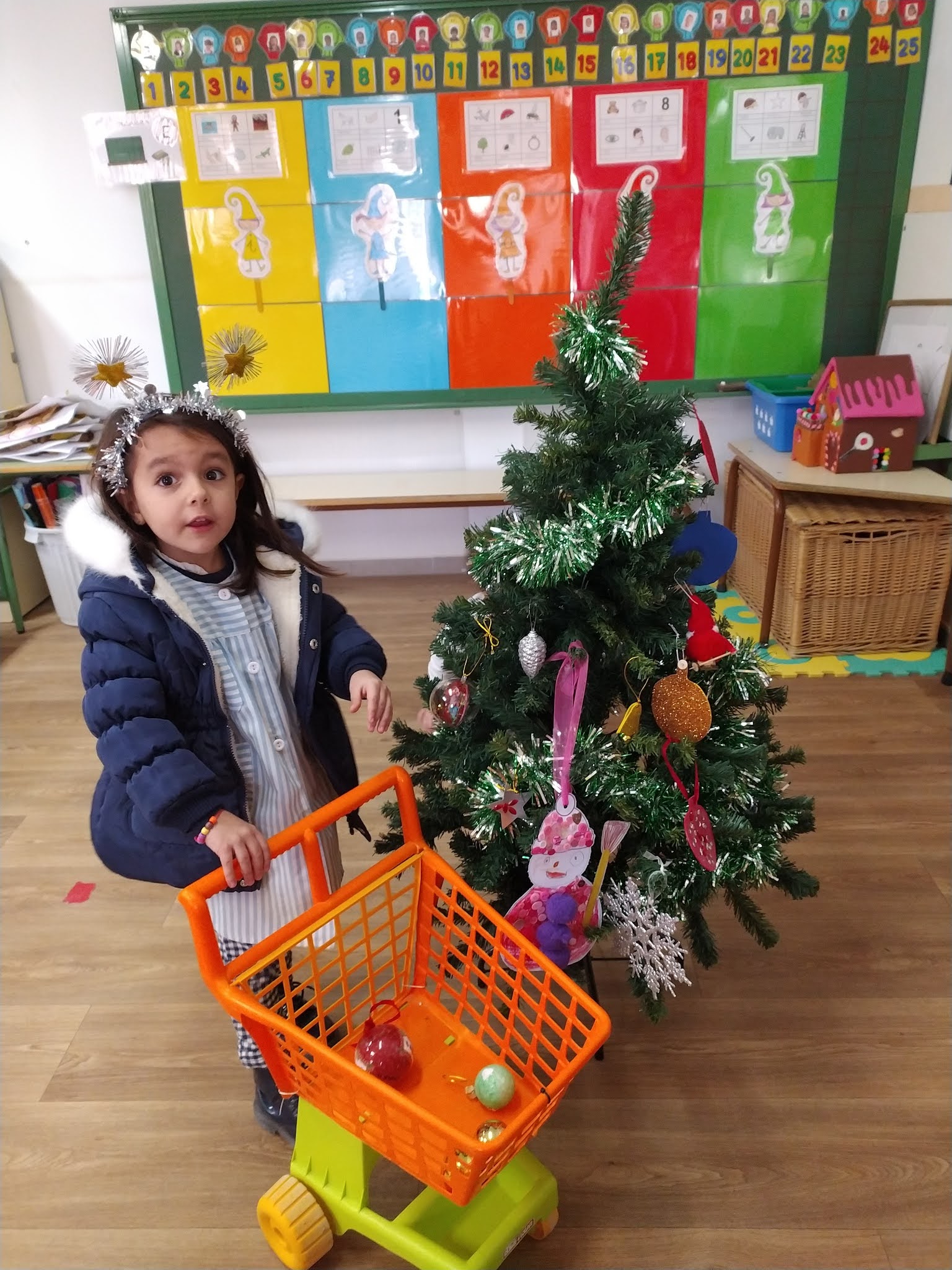Cada niño trae un adorno de casa y después jugamos a montar y desmontar el árbol en el Rincón de la Navidad.